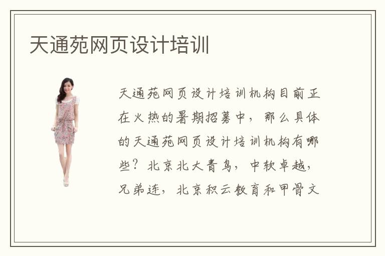 天通苑网页设计培训设计培训机构目前正在火热的暑期招募中,那么具体的天通苑网页设计培训机构有哪些?北京北大青鸟,中软卓越,兄弟连,北京积云教育和甲骨文这五所天通苑网页设计培训机构都是当地不错的关于网页设计的培训机构。当然了这些培训机构同样开设了其他的关于it类的培训课程,机构针对当下社会的热门行业,开设了有网站开发,新媒体营销,平面设计,app开发等课程。那么这些天通苑网页设计机构教学模式是什么样的呢?主要针对当下的受众人群和时间的安排,上午开展理论的授课,下午是项目实践的教学和演练,晚上还会安排教师前来辅导。这很好的解决了学员们课上的难题也助于教师和学员的沟通和交流。接着说一说当下网页设计师的发展情况,现在的情形来说,对于网页设计师的需求是与日俱增的,不管是在传统的it行业还是互联网行业,还有许多行业都是对于网页设计师有职业上的需求的。