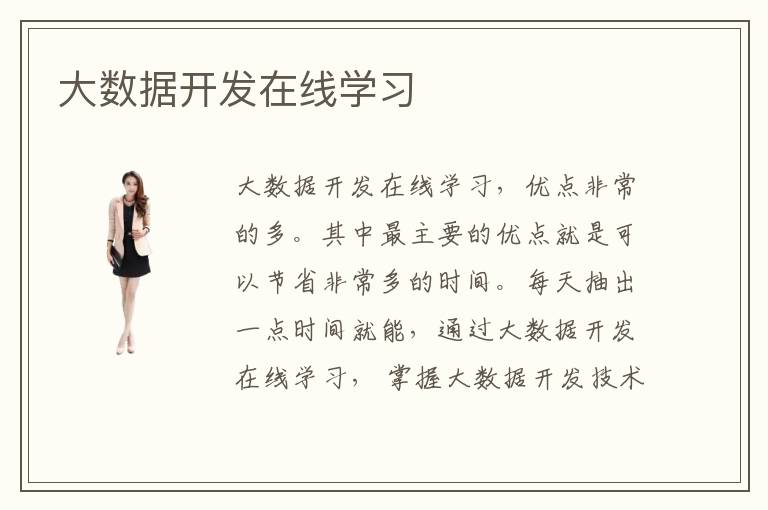 大数据开发在线学习,优点非常的多。其中最主要的优点就是可以节省非常多的时间。每天抽出一点时间就能,通过大数据开发在线学习, 掌握大数据开发技术。但是去开发在线学习,现在很多人都在选择的方法。学习大数据开发技术过程,并不特别的轻松。通过大数据开发在线学习,就可以轻松的学习大数据开发技术。从而进一步更好的掌握大数据开发技术。每天,通过大数据开发在线学习的学员非常的多。他们大部分都是一些上班族,没有过多的时间来学习。所以只能通过大数据开发在线学习,学习大数据开发知识。这种方法,被很多人认可。也越来越受欢迎。通过大数据开发在线学习,一样可以学到不少专业的知识。而且大数据开发,在线学习,比较的省时省力。