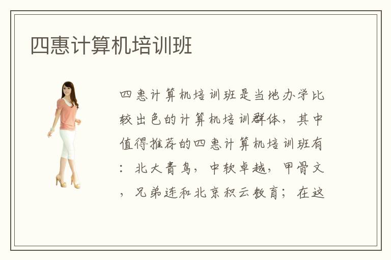 四惠计算机培训班是当地办学比较出色的计算机培训群体,其中值得推荐的四惠计算机培训班有:北大青鸟,中软卓越,甲骨文,兄弟连和北京积云教育;在这几所四惠计算机培训班中,比较具有特色的培训机构是兄弟连,在教学上,这所四惠计算机培训班教学方针是:培养有能力,有专业素养的专业计算机人才。接着说一说当下it行业的发展前景,随着时代的发展和技术的不断更新,行业的发展会体现在一下几点:市场的需求将会不断增大;行业的更新换代速度会不断加快;不少it相关职业将面临很大的挑战性;职业生涯时间加长;学习的机会将会不断变多;就业的范围也会越来越广。通过这些可以看出,计算机相关专业的就业人群还是很具有就业优势的,不管是现在还是将来。