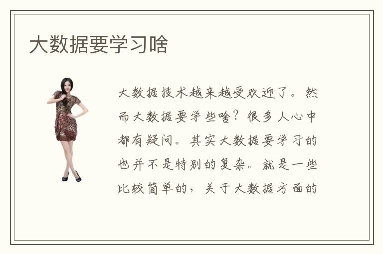 大数据技术越来越受欢迎了。然而大数据要学些啥?很多人心中都有疑问。其实大数据要学习的也并不是特别的复杂。就是一些比较简单的,关于大数据方面的基础一点的知识。大数据要学习的知识非常的多。但是大数据要学习的知识并不是很难。只要认真努力的去学习大数据。就完全可以掌握到专业性的,关于大数据方面的知识技术。这就是为什么那么多的人都在学习大数据。虽然说大数据要学习的内容非常的多。只要是一点点,慢慢的去积累经验的话,终究可以学会大数据技术。学习大数据非常的有必要。而进行大数据专业的学习也是,比较不错的选择。虽然说大数据要学习的,知识非常多。但是也要好好的去学习大数据这门专业。因为从事大数据行业,非常的受欢迎。大数据行业人才稀缺。只要掌握大数据技术,把将来找工作方面会比较的,好找一些。