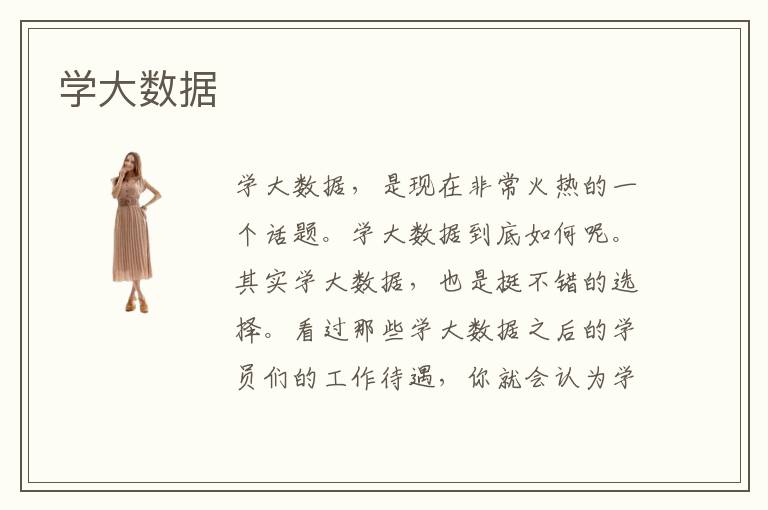 学大数据,是现在非常火热的一个话题。学大数据到底如何呢。其实学大数据,也是挺不错的选择。看过那些学大数据之后的学员们的工作待遇,你就会认为学大数据是非常值得的。然而这里面也需要付出很多的努力,才可以学会大数据。毕竟大数据技术是专业性非常强的。需要,自己耐心的去一点点的学大数据。这样才可以,掌握到大数据相关的知识。越来越多的人也都在学大数据。但是每一位人学出来的大数据技术都是不同的。有的学大数据并没有学到其中的精髓,就是因为他们,没有去进行专业的学习。所以说学大数据最重要的一个点就是到专业的地方去进行培训学习才可以啊。这一点非常非常的重要。学大数据,是大部分人的选择了。所以说,不学大数据就感觉自己好像,落后一样。