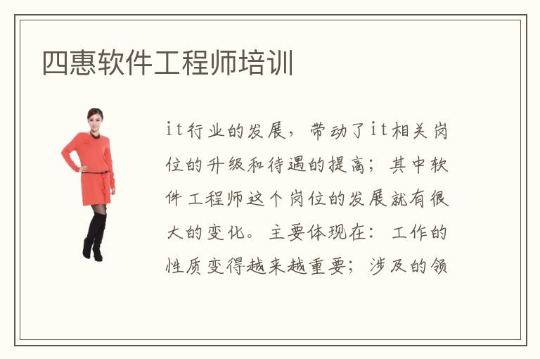 it行业的发展,带动了it相关岗位的升级和待遇的提高;其中软件工程师这个岗位的发展就有很大的变化。主要体现在:工作的性质变得越来越重要;涉及的领域越来越广;薪资待遇越来越高。四惠软件工程师培训应运而生,优秀的四惠软件工程师培训机构有:北大青鸟,北京积云教育,中软卓越,兄弟连等。在师资力量上,这几所四惠软件工程师培训机构的配置都是不错的,教师主要由:研究生以上学历的教师和各大企业的优秀管理者组成,他们分别负责理论和实践的教学,各取所长;很大的提高了培训学员的学习效率。那么四惠软件工程师就业前景会发生怎么样的变化呢?从目前整个行业的发展态势来看,软件工程师就业前景会变得越来越好,但是入职后面对的专业技术上的挑战会越来越多。