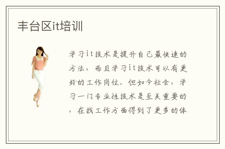 学习it技术是提升自己最快速的方法,而且学习it技术可以有更好的工作岗位。但如今社会,学习一门专业性技术是至关重要的,在找工作方面得到了更多的体现。如果有一门专业的技术,就可以找到非常理想的工作岗位,而且工资待遇极高。所以,很多人都在学习it技术,而且是it技术最好的方法就是到丰台区it培训it培训机构学习。丰台区it培训机构里面的教师都是非常专业的教师,在教学方面有着独特的教学方式,针对不同的学生制定不同的教学方案。让每一位学生在这里都可以学到非常专业的it技术。而且丰台区it培训机构有着非常多的培养人才方面的经验。培养出的人才非常的多。所以在丰台区it培训机构学习的话,可以放心。一定可以学到非常多的专业知识。