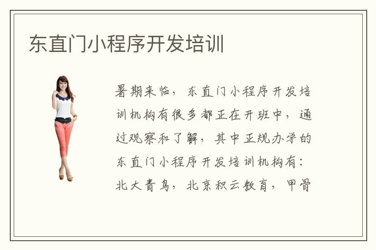 暑期来临,东直门小程序开发培训机构有很多都正在开班中,通过观察和了解,其中正规办学的东直门小程序开发培训机构有:北大青鸟,北京积云教育,甲骨文和兄弟连。之所以能够得到公众的肯定,主要在于它们有正规且创性的办学体系,不错的师资力量,不断提升的教学设备,和多年的办学经验。与市面上,刚刚冒出来的,疯狂营销拉拢人心的那些培训机构来说,这几所的办学还是比较走心,并且确实是从学员的角度出发,致力提高学员的专业技能和扩充专业知识的。再说说东直门小程序开发工程师就业前景,人们生活水平的好转和智能手机用户的不断增多,小程序的使用用户也随之增加,因此带动了整个程序开发行业的发展,所以从当下的形势来看,未来的3-5年东直门小程序开发工程师就业前景非常不错的。
