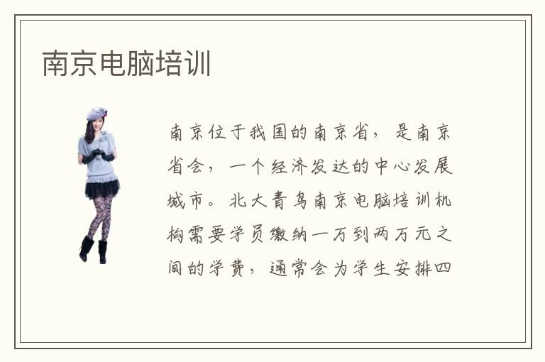 南京位于我国的南京省,是南京省会,一个经济发达的中心发展城市。北大青鸟南京电脑培训机构需要学员缴纳一万到两万元之间的学费,通常会为学生安排四个月左右的紧凑计算机相关专业学习课程,开设了丰富的计算机专业,比如java语言编程设计、php数据库维护以及ui软件的界面设计等等,都是国内大热的it专业,充分开拓了学生的就业前景,保障就业率。