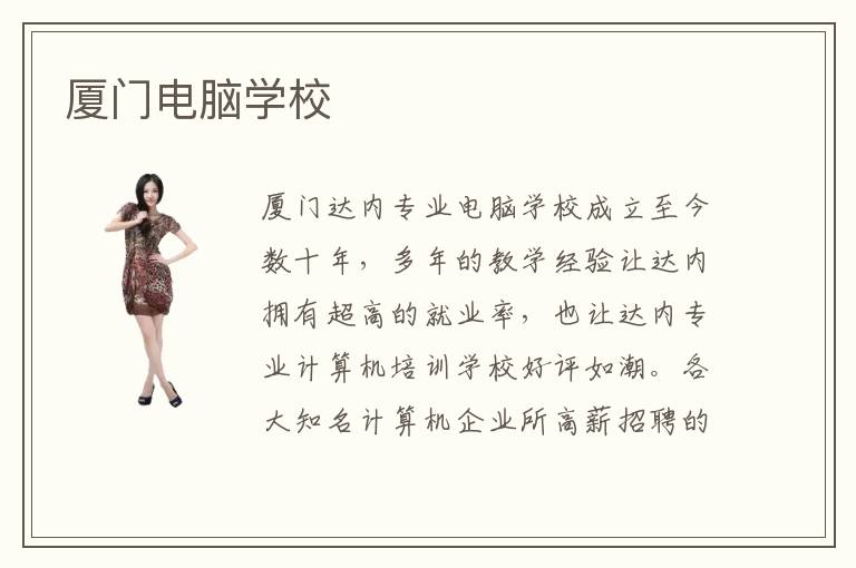 厦门电脑学校是一家比较靠谱的专业计算机教育机构,它根据国内近几年互联网行业的发展形势,以及各大计算机企业对于相关计算机人才的招聘要求,做出相应的培训课程调整,保证学员可以学习到最新的计算机专业知识,并且讲究教学模式的循序渐进,坚持从计算机语法基础开始教学培训,坚持以小班授课的教学模式,鼓励学生积极提出问题并完美的解决它。