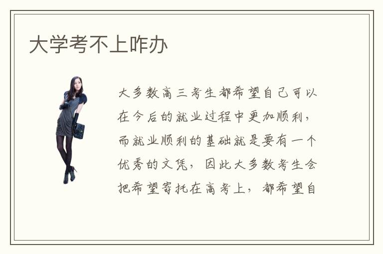 大多数高三考生都希望自己可以在今后的就业过程中更加顺利,而就业顺利的基础就是要有一个优秀的文凭,因此大多数考生会把希望寄托在高考上,都希望自己在高考过程中取得优异的成绩,顺利考上心目中的理想大学。然而并不是每个考生都可以顺利考上大学的,那么这些大学考不上的同学应该怎么办呢?大学考不上的同学要做的是调整好自己的心态,学好一门专业技术是未来就业的关键。