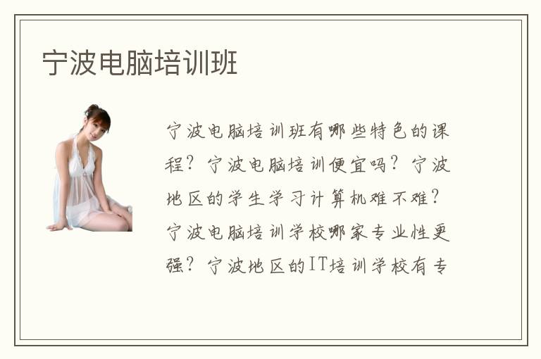 宁波电脑培训班有哪些特色的课程?宁波电脑培训便宜吗?宁波地区的学生学习计算机难不难?宁波电脑培训学校哪家专业性更强?宁波地区的IT培训学校有专业的教学团队最支撑,以学生的就业问题为首要关注点,把学校的特色课程开展得有声有色。宁波电脑培训学校的收费情况在各个时期会有一些小小的波动,但总体趋于平稳状态。宁波计算机IT行业发展空间怎么样?