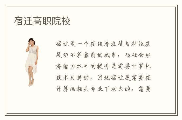 各位家长对于高职技术院校的评价一直都并不是很好,很多没有在中考取得优异成绩的学员在去接受高职院校专业教学的时候总会被家长们念叨。其实这是大家对于高职院校的一种偏见,并不是所有的高职院校在教学质量方面是不过关的,宿迁高职院校就受到了当地市民的喜爱。宿迁高职院校在成立之初也是遭到了很多人的反对,然而坚持到现在宿迁高职院校已经成为学员们进行专业学习的好平台了。