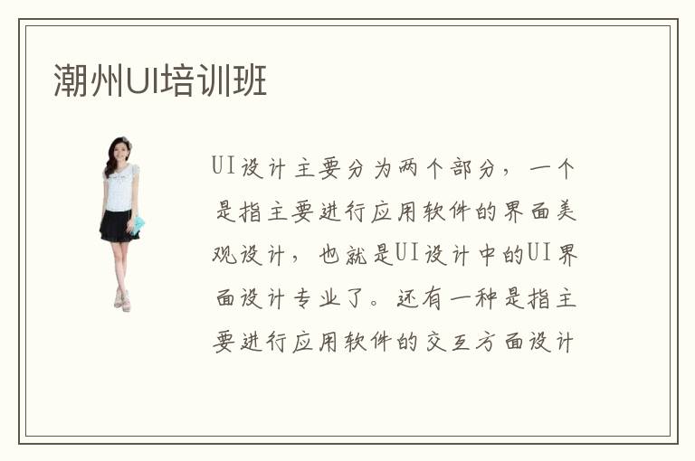 所谓UI设计师基本上的工作就是为了产品能够更好的占领市场,为了软件能够得到更多用户的青睐,而进行应用软件的界面设计以及交互设计。UI设计师算得上是目前国内新型的一种计算机职业,在国内的发展趋势也是被各大市场所看好的,因为现代社会人们的生活是离不开手机应用的。那么,潮州UI培训班主要开设的培训课程是什么呢?潮州UI培训班有没有定期开展一些实践项目呢?