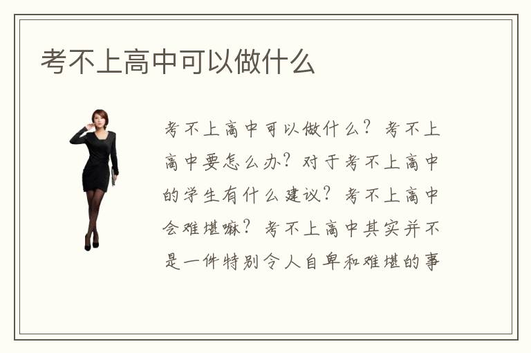 考不上高中可以做什么?考不上高中要怎么办?对于考不上高中的学生有什么建议?考不上高中会难堪嘛?考不上高中其实并不是一件特别令人自卑和难堪的事情,其实,面对越来越大的升学压力,学生们会对中考高考产生畏惧心理,如果不幸地,中考失败那就要不断地挖掘新的领域,打开自己的潜能意识,尽可能地学会全方位的沟通与交流。