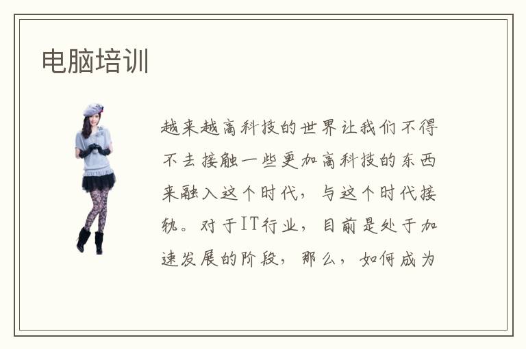 越来越高科技的世界让我们不得不去接触一些更加高科技的东西来融入这个时代,与这个时代接轨。对于IT行业,目前是处于加速发展的阶段,那么,如何成为一名就业价值和期待感都达标或者优异的计算机从业者呢?那就得通过电脑培训来实现,国内电脑培训市场情况如何?有人想要学习IT就自然有人可以培训IT,科技水平的发展对培训人员的要求就越来越高。计算机培训有没有发展潜力和发展空间?