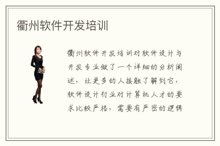 衢州软件开发培训对软件设计与开发专业做了一个详细的分析阐述,让更多的人接触了解到它,软件设计行业对计算机人才的要求比较严格,需要有严密的逻辑思维和敏锐的洞察力,所以衢州软件开发与设计专业难度系数也会比较大,学生们可以把学习软件设计专业作为一个自我突破项目。衢州软件设计培训设计培训学校好吗?衢州计算机软件培训机构好不好呢?