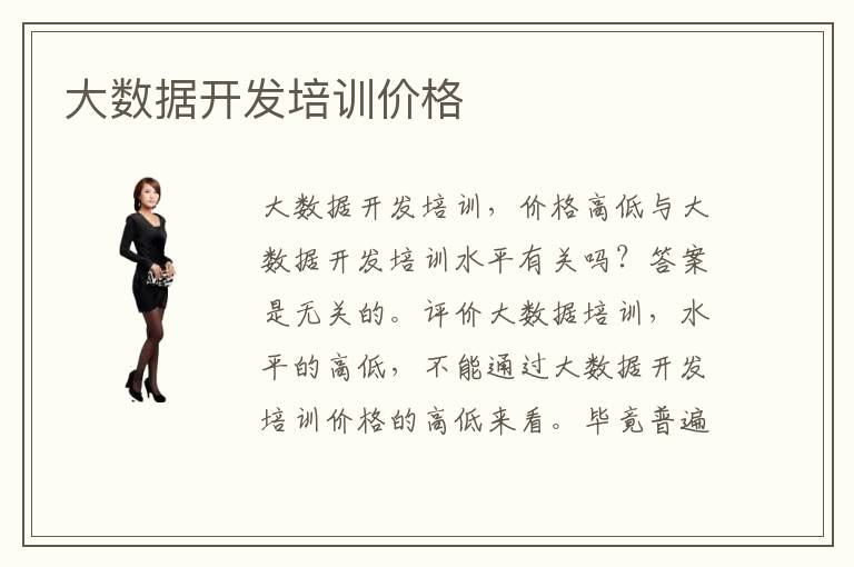 大数据开发培训,价格高低与大数据开发培训水平有关吗?答案是无关的。评价大数据培训,水平的高低,不能通过大数据开发培训价格的高低来看。毕竟普遍大数据开发,培训价格都是比较低的。你不能说大数据开发培训价格低了之后,就会影响他的培训水平呀。大数据开发培训水平是一致的。而且,选择大数据开发培训,是不错的方法。大数据开发培训水平都非常的高。大数据开发培训价格就比较的,平易近人。学习大数据开发技术才是最主要的。大数据开发培训能,培训,给你过多的关于大数据开发方面的知识,才是好的。其他的什么价格水平都不重要。最重要的是你通过大数据开发培训之后,学到了些什么?如果什么都没学到,那肯定是,不好呀。所以说大数据开发培训,水平,多还是可以的。