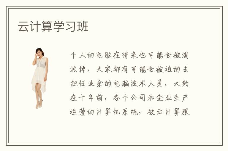 个人的电脑在将来也可能会被淘汰掉,大家都有可能会被迫的去担任业余的电脑技术人员。大约在十年前,各个公司和企业生产运营的计算机系统,被云计算服务所取代。从此云计算诞生。近几年以来,我们大家对于电脑的观念也都有了非常大的变化,我们在日常的生活当中虽然手机用的多,但是手机在办公方面无法取代电脑。但是,现在我们大家在使用电脑办公的时候,不再像从前一样依赖电脑硬盘储存,我们都喜欢用云端储存办公文件。云端储存安全性很高,可以把一些非常重要的文件进行加密。电脑也就逐渐变成云计算运用的载体。随着云计算的普遍,想要学习云计算技术的人也就随之增加,云计算学习班的选择也就成了大家所关注的问题。选择云计算学习班要从多个方面去考察。