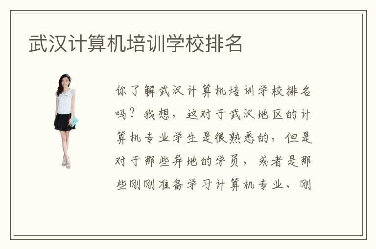 你了解武汉计算机培训计算机培训学校排名吗?我想,这对于武汉地区的计算机专业学生是很熟悉的,但是对于那些异地的学员,或者是那些刚刚准备学习计算机专业、刚刚准备加入it这一行业的学员,却并不是很熟悉。武汉计算机培训学校排名,是武汉地区想要学习计算机相关专业的学员,选择培训学校时的一个重要参考依据,下面我就来告诉大家武汉计算机培训学校的排名先后吧。
