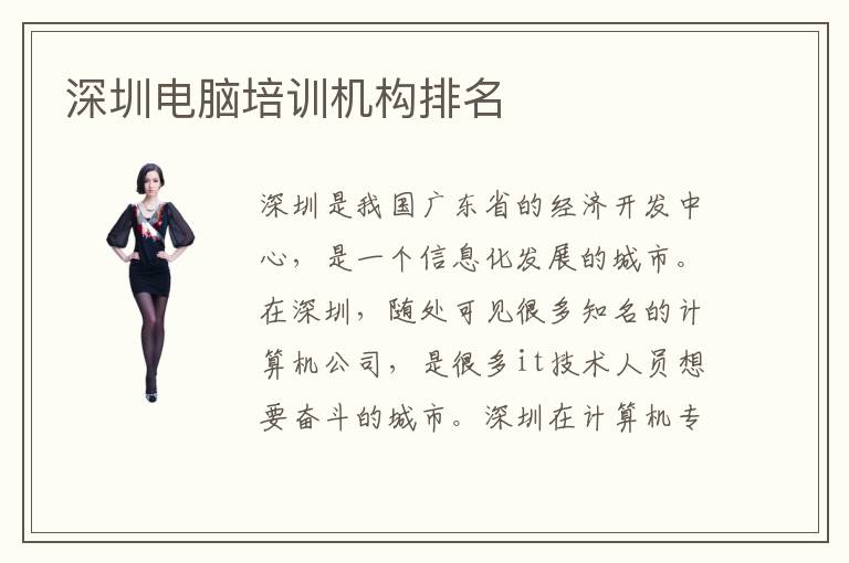 深圳是我国广东省的经济开发中心,是一个信息化发展的城市。在深圳,随处可见很多知名的计算机公司,是很多it技术人员想要奋斗的城市。深圳在计算机专业人才的培养这一方面,自然也是花费了很多心血,高薪聘请计算机行业的精英人员,完成对学员计算机培训课程的教学。深圳地区的专业计算机培训机构有很多,那么你知道互联网深圳电脑培训机构电脑培训机构排名嘛?