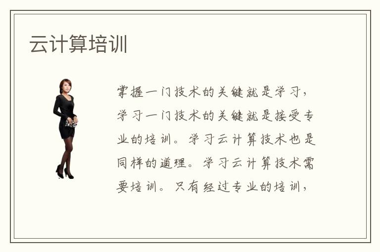 掌握一门技术的关键就是学习,学习一门技术的关键就是接受专业的培训。学习云计算技术也是同样的道理。学习云计算技术需要培训。只有经过专业的培训,才可以掌握到专业的云计算方面的知识。云计算培训的所有的课程,都是有关云计算技术的专业性的课程。把云计算技术学好,就要先学会这些专业性的技术。所以,必须得进行培训,才可以更好的掌握云计算技术。云计算培训,会用专业的培训方式培训你。经过云计算培训的人员,成功的几率更大一些。选择云计算培训,非常的有必要。最起码,这也是学习云计算技术的一种方式。而且选择云计算培训学习的这种方法,被很多人都认可。大部分正在学习云计算技术的人员,就是选择的云计算培训这种方式学习云计算技术。