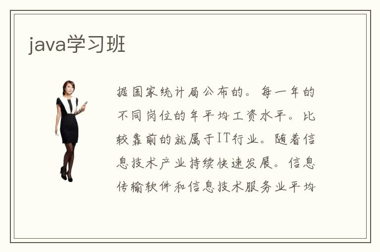 据国家统计局公布的。每一年的不同岗位的年平均工资水平。比较靠前的就属于IT行业。随着信息技术产业持续快速发展。信息传输软件和信息技术服务业平均工资,增长的非常的快。而java作为热门行业,其应用领域广泛,就业薪资高。人才系学发展前景,等优势,因为许多人都看到。因此大部分的人都在学习java技术。就有了多种多样的java学习班,如何选择java学习班呢?需要我们有非常谨慎的态度。因为可能一不小心就会受骗。第一天肯定要实地去考察学习班的实力。存在的时间是否够久,培训过的学员是不是都比较的多。一般靠谱的学习班都会有一些试听课,让大家去体验。现在很多的学习班都会,针对于上班族而节省时间。夜间教学模式或者是,周六周日学习。特别的便利。