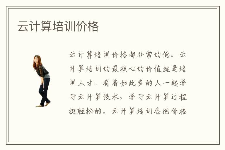 云计算培训价格都非常的低。云计算培训的最核心的价值就是培训人才。有着如此多的人一起学习云计算技术,学习云计算过程挺轻松的。云计算培训各地价格不一样。但是都不会相差太多。普遍都在10000元以上。但是,也不能心疼这些钱。云计算培训到底值不值这些价格,培训过后就会知晓。而且通过云计算培训后你自身的价值就会被提升。相对比而言云计算培训价格并不算高。云计算培训价格普遍在,每一位学习云计算技术的人员的接受范围之内。想要学习到专业的云计算技术方面的知识,就学要花钱的。天下没有免费的午餐。只有明码标价大家才会认真的去学习。也会无比的珍惜学习云计算知识,进行云计算培训的机会。既然机会那么的难得就不要在乎价格了,学习才是最主要的。