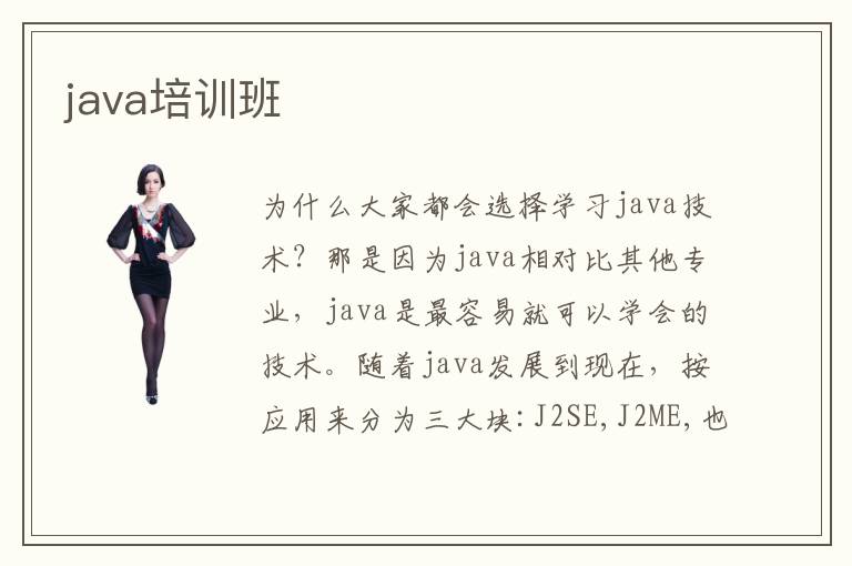 为什么大家都会选择学习java技术?那是因为java相对比其他专业,java是最容易就可以学会的技术。随着java发展到现在,按应用来分为三大块:J2SE,J2ME,也就是SunONE体系。J2SE和Java2是基础版,就是用于电脑桌面编程,J2ME是用于系统开发,像J2EE是Java2的企业版,例如电子商务网站和系统。但J2ME对于刚开始学习的人来说特别的不好掌握,所以,J2EE就是现在应用比较广泛和最好掌握的,J2EE又包括许多的组件,如Jsp,Servlet,JavaBean,EJB,JDBC,JavaMsil等,要学习起来需要花费时间,所以,就需要到java培训班学习,毕竟java培训班比较好的一点,就是有强大的教师团队,他们会对你进行专业的辅导。