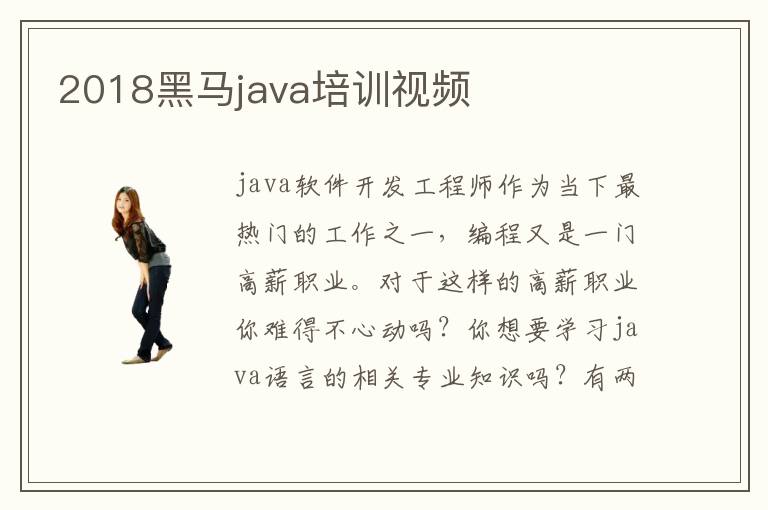java软件开发工程师作为当下最热门的工作之一,编程又是一门高薪职业。对于这样的高薪职业你难得不心动吗?你想要学习java语言的相关专业知识吗?有两种方法,一种是通过老师的教育,在培训机构学习相关知识。还有一种当然就是自学啦,不过自学不是很简单的,需要查询很多资料,观看相关视频。接下来,大家赶紧打开浏览器,搜索2018黑马java培训视频吧,一起来学习与提升java语言吧!