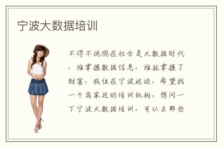 不得不说现在社会是大数据时代,谁掌握数据信息,谁就掌握了财富,我住在宁波这边,希望找一个离家近的培训机构,想问一下宁波大数据培训,可以去那些学校啊,我听过一个叫北大青鸟的学校,但是不了解,不知道他们学校怎么样,有没有大数据培训这个专业,或者其他相关专业可以参考的,网上看到的宁波大数据培训班我个人有点犹豫,毕竟现在是信息大爆炸时期,各种信息鱼龙混杂的,难免会有骗人的 ,还想知道有哪些专业可以学习啊,都说选择好的专业比选择学校更重要,我个人觉得也是这个道理,再问一下,我之前有学过C语言程序,现在想学java可以不,还有什么要求,我听说学习java好就业,很多行业都可以去的,不知道具体可以去什么公司,谁你说一下,求大神指点啊