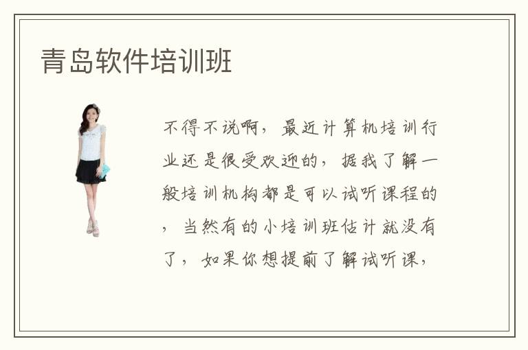 不得不说啊,最近计算机培训行业还是很受欢迎的,据我了解一般培训机构都是可以试听课程的,当然有的小培训班估计就没有了,如果你想提前了解试听课,可以去一些口碑好的软件培训班申请一下,青岛软件培训班也是看你选择哪个培训班呢,如果你找的是青岛软件培训班大的培训班是可以先去试听课程的,而且他们都是有官网的,你直接网上搜一下培训班名称去官网看看,一般都有课程介绍,费用介绍,师资力量等方面介绍,还有就是在线学习比较方便,随时随地可以学习,至于是否可以分期付学费这个问题,我个人觉得是可以的,毕竟现在分期付款应用广泛,不过具体到哪个培训班是否可以,就需要你亲自问一下,一般大的培训班是可以分期付款的,当然你选择培训的机构也是口碑不错的大的培训班