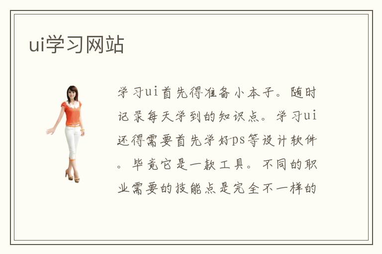 学习ui首先得准备小本子。随时记录每天学到的知识点。学习ui还得需要首先学好ps等设计软件。毕竟它是一款工具。不同的职业需要的技能点是完全不一样的。所以说学习ui就需要到专业的网站上面去学习,找一些相关的教程。认真的跟着从头到尾做几个作品。这样一来,就会比较系统地掌握各类工具使用方法。在熟练掌握了ps设计软件之后。就可以尝试着去临摹一些大师的作品。慢慢找到感觉之后。再做出自己的风格的作品。刚开始的设计当中要遵守规范。渐渐的就能熟悉的运用所学到的知识,做完整的设计作品。在学习ui技术前对自己的职业有一个规划也是不错的。可以考虑自己以后往哪方面发展。这样的学习起来,就更加的有动力,有目标。学习过程会非常的愉悦。