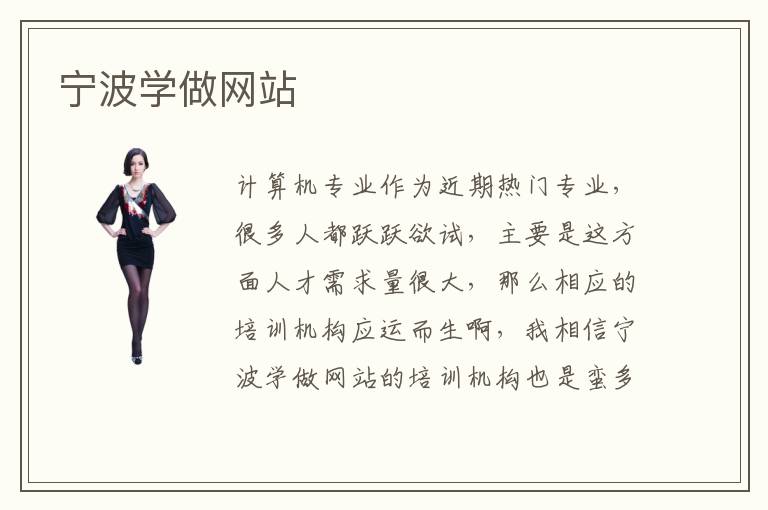 计算机专业作为近期热门专业,很多人都跃跃欲试,主要是这方面人才需求量很大,那么相应的培训机构应运而生啊,我相信宁波学做网站的培训机构也是蛮多的,如果打开手机搜一下,估计也让你不知道如何选择,宁波学做网站建设和北京做网站相比,我个人觉得北京的费用贵一些啊,毕竟北京是一线城市,各方面消费高这是必然的,培训机构当然也会考虑各方面成本,最后买单的也是消费者自己啊,北京做网站的培训机构我就知道一个叫北大青鸟的学校,估计是他们宣传力度大,所以耳濡目染了,还有就是最近各方面培训机构费用都涨价了,看到这个我也是很伤心啊,本来还想去学习一门技术呢,现在只能是坐在观望一下,等着啥时候降价,哈哈,估计这就是想想罢了,物价上涨是必然趋势,我只能说白日做梦了