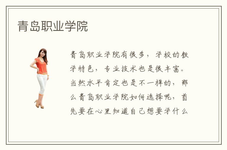 青岛职业学院有很多,学校的教学特色,专业技术也是很丰富。当然水平肯定也是不一样的,那么青岛职业学院如何选择呢,首先要在心里知道自己想要学什么专业,然后根据自己要学的专业,在青岛职业学院中选择有自己要学的专业的学院,下一步就是如何选择学校了,应该了解这些学校,可以选择几所口碑好的学校去实地考察一下,当然也可以在网上进行对比。主要从学校的教学质量,学校的文化,风气、就业等等方面来考虑。例如师资看看老师是否有丰富的工作经验,就业看看毕业了的学生工作去向,等等来选择一所能够让自己学到知识,学到技术。环境优美,校风优良的学校。来实现自己的梦想,让梦想起飞的地方。职业学院就业前景也是很好的,现在社会很需要技术型人才。