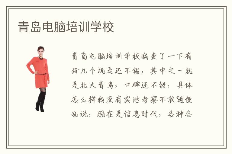 青岛电脑培训学校我查了一下有好几个说是还不错,其中之一就是北大青鸟,口碑还不错,具体怎么样我没有实地考察不敢随便乱说,现在是信息时代,各种各样的信息都有,所以需要有一双慧眼,青岛电脑培训电脑培训学校对于零基础的人当然可以学习啊,只不过你需要更下功夫,要有心理准备 编程这方面还是很枯燥的,而且自身罗辑思维要好,现在很多培训机构都喜欢说零基础学习,包学会什么的,当然不排除有的培训班是可以达到包学会包就业的,有的那就完全是不靠谱,模仿人家都广告词罢了,至于你问得学费怎么样这个问题,一般收费在一万左右,也有几千块钱收费的,你完全可以先找几家对比一下,看看哪一个性价比高,还有人家都有免费试听课程的,你看看申请一下,再决定要不要报名
