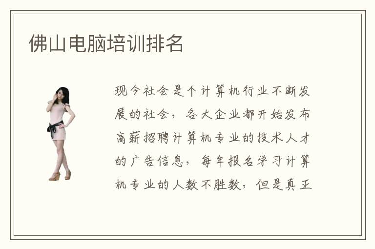 现今社会是个计算机行业不断发展的社会,各大企业都开始发布高薪招聘计算机专业的技术人才的广告信息,每年报名学习计算机专业的人数不胜数,但是真正优秀的计算机技术人才却占少数,真正被企业录用的计算机人才也就更少了。这就造成了当今计算机行业人才紧缺的现状,因此进入佛山电脑培训排名前几的学校学习计算机专业,才是改善这一现状的唯一办法。