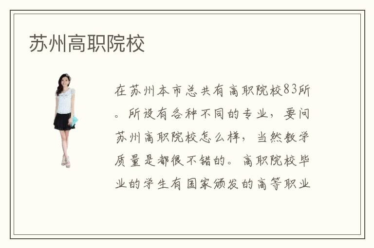 在苏州本市总共有高职院校83所。所设有各种不同的专业,要问苏州高职院校怎么样,当然教学质量是都很不错的。高职院校毕业的学生有国家颁发的高等职业技术学校证书,与本科大学相比,高职院校则更加注重的是培养职业技术型人才。目前,国内各地高职院校发展的都越来越好,不只是公办,很多民办职高院校的教学质量甚至更好,师资力量和校园环境都非常出色。只是每年学费标准相较于公办职高院校会相对高一些。苏州高职院校毕业工资标准,这个具体要看所学的专业以及个人的能力来说,一般高职院校毕业后都会包分配。俗话说:师傅领进门,修行在个人。无论从事哪个行业,都要认真学习钻研。学历高低不能代表能力的好坏,企业都喜欢优秀的人才。只要你的专业技术过硬,那么论从事什么工作,拿高薪都不是一件难事!
