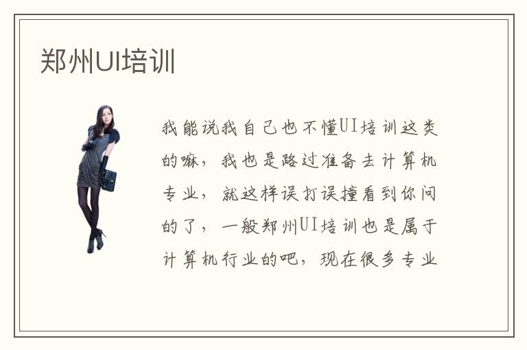 我能说我自己也不懂UI培训这类的嘛,我也是路过准备去计算机专业,就这样误打误撞看到你问的了,一般郑州UI培训也是属于计算机行业的吧,现在很多专业都和计算机有关系的,让人很烦恼的是现在郑州UI培训机构太多了,看的眼花缭乱的,都不知道选择哪一家好,主要是网络发展的弊端,各类信息鱼龙混杂的,很难辨别,我想郑州UI培训机构也有好的呢,只是我没有一双慧眼,所以就多看看,多了解一下大家怎么说的,你也可以去多了解一下大家口碑评价,如果大家都认可的郑州UI培训机构,那应该就很不错的,毕竟口碑是一点点积攒起来的,希望我们都可以知道靠谱的郑州UI培训机构,不对,我是寻找靠谱的计算机培训机构的,如果哪位专业人士懂得话 ,看到了就麻烦详细说一下,感激不尽