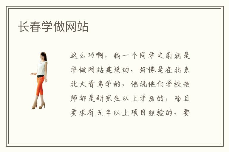 这么巧啊,我一个同学之前就是学做网站建设的,好像是在北京北大青鸟学的,他说他们学校老师都是研究生以上学历的,而且要求有五年以上项目经验的,要通过什么考证,反正说的意思就是比较牛逼那种,他他当时是高考分数打不打大学录取线,家里人都去学计算机行业的专业,他当时也不懂网站建设这类的,就去学习了,当时也不知道就业前景怎么样,不过学出来发现这块招聘需要挺多的,他就感觉自己运气很好,现在他在华为研发部上班,薪资不用说也是让我羡慕那种,所以你问长春学做网站这类的培训,当然支持去学啊,不过长春学做网站建设也要找好一点的学校,建议先去了解长春学做网站的学校背景,师资力量,教学模式这些,至于收费标准也和市场价位差不多吧,现在市场价位就是一万左右,长春学做网站建设费用也是这个范围吧