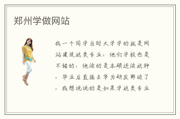 我一个同学当时大学学的就是网站建设这类专业,他们学校也是不错的,他读的是本硕连读这种,毕业后直接去华为研发那边了,我想说说的是如果学这类专业,就业前景还是很好的,不过也是看个人学习能力怎么样了,郑州学做网站的机构应该也是很多的,毕竟这方面很热门,竞争力越来越厉害,如果要学做网站的,还是要现在一家好点的培训机构,这样各方面才有保障啊,郑州学做网站建设一般去计算机专业的学校就可以啊,因为他们是相关专业,学的精深就业当然不用发愁,现在这方面的薪资基本上是五千左右,至于郑州学做网站就业薪资也是这个范围吧,郑州也是省会城市,房价都涨的很快,薪资待遇应该也不很低的,薪资待遇这块其实你也不用太担心,只要自己能力很强,走到哪里都有工作机会的