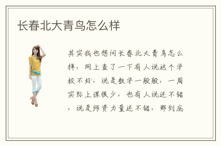 其实我也想问长春北大青鸟北大青鸟怎么样,网上查了一下有人说这个学校不好,说是教学一般般,一周实际上课很少,也有人说还不错,说是师资力量还不错,那到底长春北大青鸟怎么样,还是不好做决定的,毕竟现在这方面的学校太多了,不知道哪一个靠谱,大大小小的培训机构都在做不通形式的宣传,我一个朋友之前在北京北大青鸟学java开发,说是学校环境不错,教学模式也是根据个人有一定方式,至于长春北大青鸟怎么样还是需要实际考察一下的,毕竟北京那边是总部,开设最早的学校,各方面不错,是可以在线听课的,据我了解的北京北大青鸟是可以的,因为课后可以根据个人学习情况再次培训,不至于没有学会就直接跳过去,至于长春这边是不是授课模式一样的就不知道了,你可以去官网问问他们在线客服的,他们会详细的说一下的