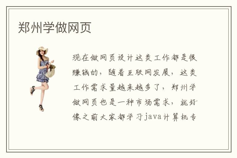 现在做网页设计这类工作都是很赚钱的,随着互联网发展,这类工作需求量越来越多了,郑州学做网页也是一种市场需求,就好像之前大家都学习java计算机专业一样,其实他们都是和互联网相关的专业,,经常自嘲说,如果当初自己赶上了这个行业的顺风车,现在也不至于吃死工资,所以我个人觉得选择这个专业蛮好的,后期就业可以选择的工作类型也是比较多的,很多行业都需要这类人才的,至于郑州学做网页游戏也是可以的,现在网页游戏,网页设计都是很吃香的,随便一个薪资都是五千左右,不过提前是自己有这方面的经验,或者经过培训机构培训上岗的,我一个朋友就是在做网页设计的,现在薪资差不多八千多吧,当然也是很辛苦的,竞争力越来越厉害,他还担心自己失业呢,说有机会一定要在去培训深造一下,不然饭碗都被年轻人抢走了
