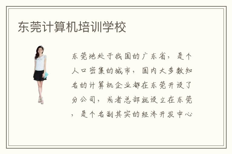 东莞地处于我国的广东省,是个人口密集的城市,国内大多数知名的计算机企业都在东莞开设了分公司,或者总部就设立在东莞,是个名副其实的经济开发中心城市。东莞注重对于互联网人才的培养意识,开设了很多家大大小小的专业计算机培训机构,这里给大家推荐北大青鸟东莞计算机培训学校。这是一所在全国都享有良好口碑的专业it教育机构,十分适合大家去学习。