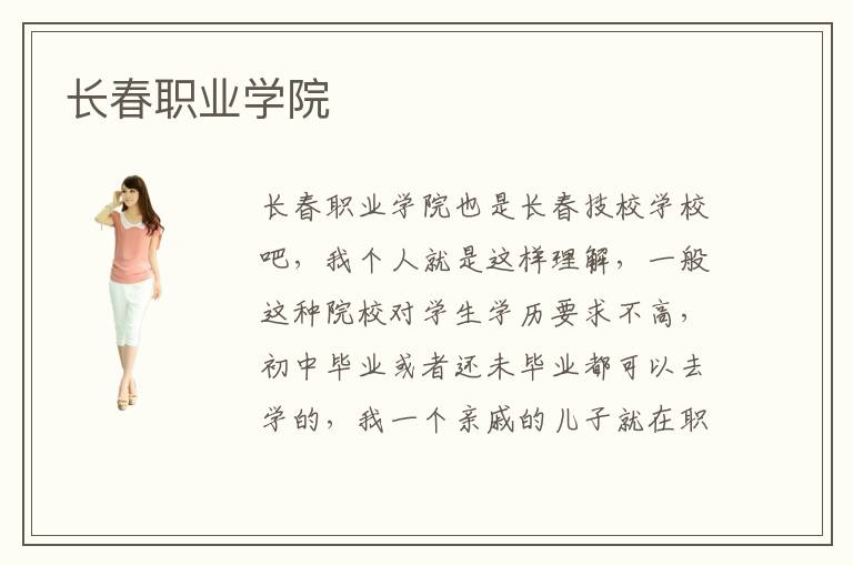 长春职业学院也是长春技校学校吧,我个人就是这样理解,一般这种院校对学生学历要求不高,初中毕业或者还未毕业都可以去学的,我一个亲戚的儿子就在职业学院学习计算机专业呢,也是今年九月份才去的,还不知道学的情况怎么样,长春职业学院学历要求应该也是初中毕业,长春职业学院应该是当地很熟知的学校,因为我就知道我这里的很多职业学院,一般学校的招生计划属于内部信息,只有学校内部招生办才有的,你想知道长春职业学院招生计划是害怕报名录取不了是吗,一般这类学校只要报名了都是可以被录取的,所以这一点你不用担心 除非哪一个专业有特别的要求,我记得之前一个学校就要求英语数学成绩在八十分以上,如果你确定去长春职业学院,可以提前了解一下他们的专业要求的,其实在报名的信息中人家就有提示的,你可以看一下