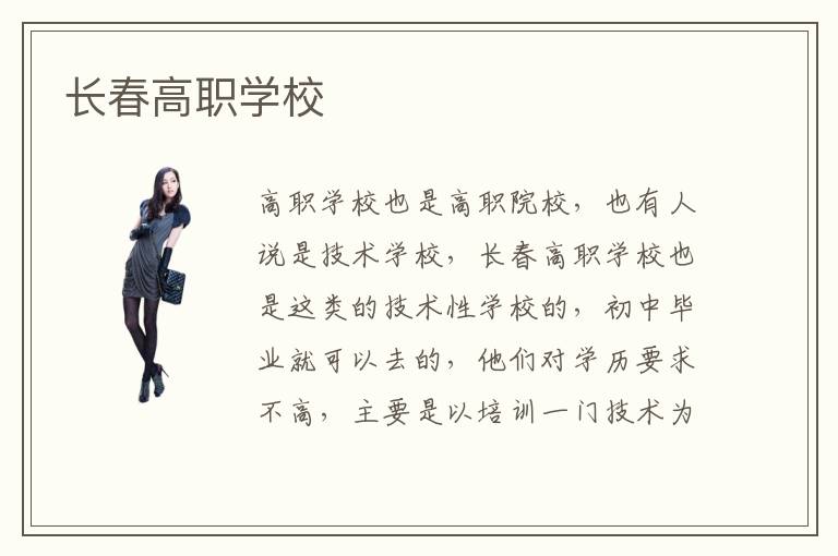 高职学校也是高职院校,也有人说是技术学校,长春高职学校也是这类的技术性学校的,初中毕业就可以去的,他们对学历要求不高,主要是以培训一门技术为核心,当然我个人觉得学习一门技术也是对自身价值的提高,如果有机会,我也是愿意学习一门技术的,也是对自己就业竞争力的提高,长春高职也是后期直接参加工作的一种途径,有一门技术也是不怕失业的,受欢迎的长春高职学校还是有很多的,主要是看你选择什么专业呢,如果是计算机专业,不妨去传智,北大青鸟看看,如果是其他专业,直接去网上查一下长春高职学校排名靠前的几个,最好去他们官网了解一下,上面有专业选择,课程费用介绍等方面的信息的,如果有时间也可以去实体学校看看,有的学校有试听课程的,可以提前预约一下,然后根据自己情况看看要不要去上