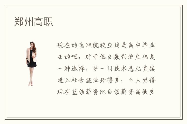 现在的高职院校应该是高中毕业去的吧,对于低分数到学生也是一种选择,学一门技术总比直接进入社会就业好得多,个人觉得现在蓝领薪资比白领薪资高很多也是常事,如果有机会自己也想去学习一门技术,现在职场竞争力太厉害了,知识没有进行及时更新,你就等着失业吧,郑州高职也是属于这类学习技术的学校,如果自己选择的专业不错,是现在热门专业,后期就业也是不用发愁的,而且薪资待遇也是可观的,听说郑州高职在当地口碑还不错的,至于是不是真的,你最好实际考察一下,了解他们师资力量,教学模式,郑州高职就业薪资也是因人而异的,就像人家说的师傅领进门,修行在个人一个道理,同一个专业毕业的去同一个公司,薪资都可能不一样的,至于你问得郑州高职报名链接他们学校官网都有的,你直接去登录报名就可以了