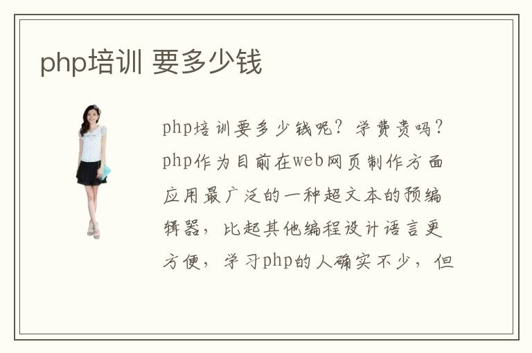 php培训要多少钱呢?学费贵吗?php作为目前在web网页制作方面应用最广泛的一种超文本的预编辑器,比起其他编程设计语言更方便,学习php的人确实不少,但是要想把php学好却不是那么容易的。对于今后的应聘求职,企业更看中的是你php技术的能力,而你的能力则取决于当初在php专业培训机构学习的课程质量,一般优秀的php培训机构的学费大约在一万五左右。