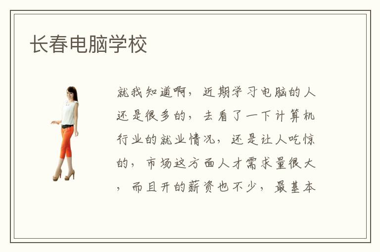 就我知道啊,近期学习电脑的人还是很多的,去看了一下计算机行业的就业情况,还是让人吃惊的,市场这方面人才需求量很大,而且开的薪资也不少,最基本工资都是五千,看到这个也是让我很羡慕啊,如果有机会自己也想去学习一门技术,后期跳槽也是加分的,突然明白了计算机这类培训机构收费高的原因了,看了一下长春电脑学校也是其中之一,现在这类电脑学校也有很多,如果你去网上搜一下长春电脑学校,就会大大小小的各种学校名称,有的你甚至没有听过的,优秀的长春电脑学校也是有的啊,如果你搜优秀的长春电脑学校,想必也会出现很多,毕竟现在网络发展迅速,这方面的信息鱼龙混杂的,不好辨别真假 ,所以只能参考一下,不能完全做决定,所以建议去实体学校考察一下,还有就是,如果已经选择好哪一个学校了,就去学校官网看看,一般官网还是靠谱的