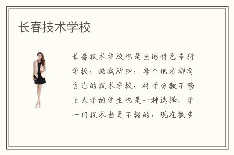 长春技术学校也是当地特色专科学校,据我所知,每个地方都有自己的技术学校,对于分数不够上大学的学生也是一种选择,学一门技术也是不错的,现在很多蓝领比白领薪资待遇高很多的,现在也不会存在说上大学是唯一出路,很多参加工作了后面还去培训机构学习一门技术,一方面提高个人价值,一方面是让自己在各种竞争中有自己的优势,长春技校知名度完全可以去网上看一下的,一般网上都有排名的,和长春大学相比,当然长春技校知名度不高了,但是不妨碍学习了,如果你已经选择好哪一个学校了,直接去他们学校考察一下,看看学内环境招生信息这些的,一般技校的环境还不错的,我想长春技术学校学习环境也不错,主要是学生人数不多,班级授课就可以照顾到每个学生,当然自身也要有学习的动力的,熟话说师傅领进门,修行在个人嘛