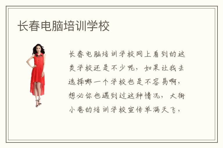 长春电脑培训学校网上看到的这类学校还是不少呢,如果让我去选择哪一个学校也是不容易啊,想必你也遇到过这种情况,大街小巷的培训学校宣传单满天飞,说什么零基础学电脑,包就业分配这些,想着也是比较夸张的,当然也不排除有一些好点学校,如果去网上找一下长春电脑培训电脑培训学校,当然也会遇到这样的问题,选择困难症,估计不是我一个人,真真假假很难辨别,不是找不到学校,而是太多了,想找一个靠谱的长春电脑培训学校实在不易啊,宣传力度很大,都称自己的学校好,对于培训者无非就是一个考验,现在不是很多电脑培训学校都可以在线试听课程的嘛,你也可以提前去预约一下,免费试听一下他们课程,多去对比几个学校,或者直接去当地口碑不错的电脑学校考察一下,看看学内环境,招生报名这些的,如果感觉合适再做决定,就这样,希望可以帮到你