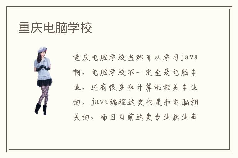 重庆电脑学校当然可以学习java啊,电脑学校不一定全是电脑专业,还有很多和计算机相关专业的,java编程这类也是和电脑相关的,而且目前这类专业就业率还是蛮高的,主要是市场需求空间大,对这类人才比较稀缺,物以稀为贵嘛,说的就是这个道理,不过话说回来,现在这类培训机构太多了,好坏难辨,我想重庆电脑学校也是如此,而且大家对好坏评价不一,有的学校是看重这类设施投资,有的学校可能资金投入侧重点在宣传力度上面,我个人觉得师资力量和教学质量是考察一个学校好坏的重要因素,如果你打算去重庆电脑学校学习java也是一个好的选择,说是最基本工资都是五千左右,对于一个刚刚毕业的学生来说也是不错的,如果重庆电脑学校的java专业是学校王牌专业,完全可以去学习啊