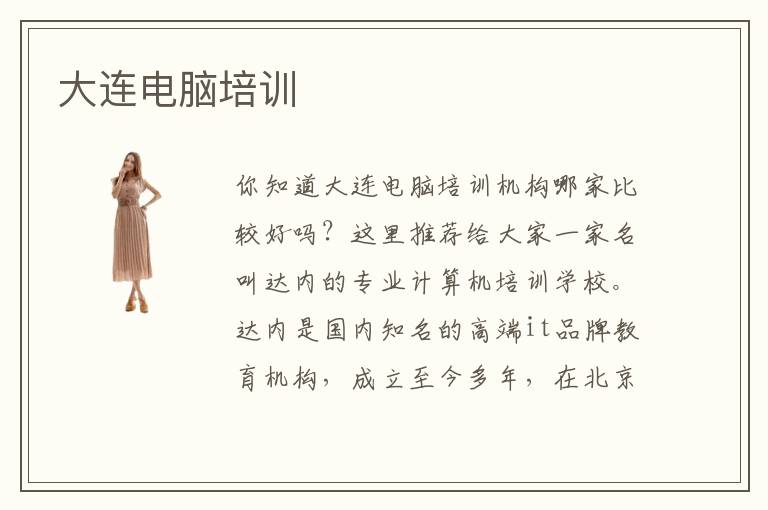 你知道大连电脑培训机构哪家比较好吗?这里推荐给大家一家名叫达内的专业计算机培训学校。达内是国内知名的高端it品牌教育机构,成立至今多年,在北京、深圳等地区都开设了授权分校区,当然,也包括大连。达内致力于培养高素质、强专业的优秀计算机技术型人才,与国内多家知名的品牌机构都有着长期稳定的项目合作关系,充分保障了学员今后的就业问题。