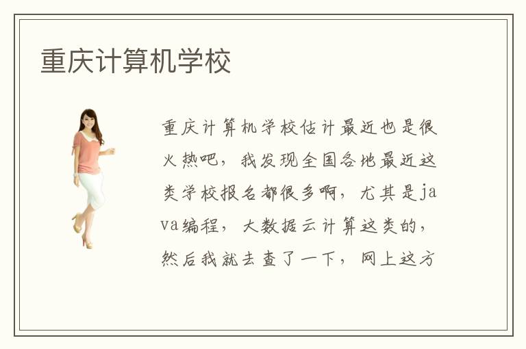 重庆计算机学校估计最近也是很火热吧,我发现全国各地最近这类学校报名都很多啊,尤其是java编程,大数据云计算这类的,然后我就去查了一下,网上这方面的招聘信息很多啊,而且给开的薪资也不低,难怪这类计算机培训机构这么多报名的,原因全在这了,重庆计算机学校也有好多家呢,如果选择一个口碑不错那应该还不错,毕竟口碑是大家一点点积攒起来的,当然你可以实际考察一下的,主要了解老师教学水平怎么样,师资力量也是参考的重要因素,还有就是就业这块,是直接分配就业还是自己找工作,不过现在一般都是自己找工作的多一些,除非学校有校企合作项目,会把一部分学生送到企业去上班,这种情况一般是实习的时候就确定好了,重庆计算机学校本地就业也是可以实现的啊,本地就业对环境饮食都习惯,大部分人都选择本地就业的,至于重庆计算机学校招生报名这类的一般学校官网都有这类信息的,你直接去你选择好的学校官网看看